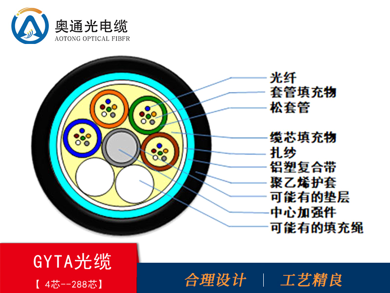 产品描述:GYTA光缆具有很好的机械性能和温度特性; 良好的抗压性和柔软性; PE护套具有良好的抗紫外辐射性能