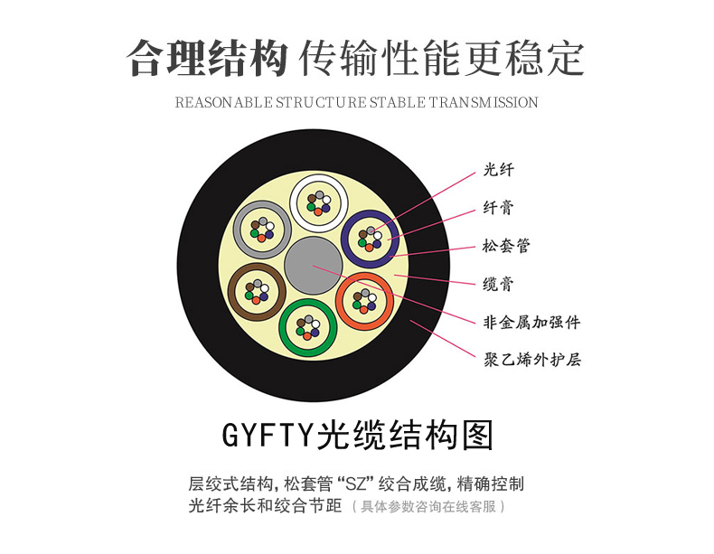产品描述:适用范围 适用于长强电区长途通信、高压电力线平行区间或易受强电磁、雷击危害场所和局间通信。 适用于架空或管道敷设。 技术特征: 合理的设计、独特的工艺控制和优质的材料选配,使光缆具有优异的机械化性能和环境性能。 尺寸小、重量轻、抗弯曲性能和柔韧性能优越,敷设方便。 非金属加强件有效抵抗电磁干扰。
